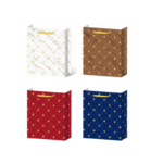 Σακούλες δώρου από ανθεκτικό χαρτόνι με πλαστική επένδυση, σε ποικιλία σχεδίων, με χειρολαβή κορδέλα.